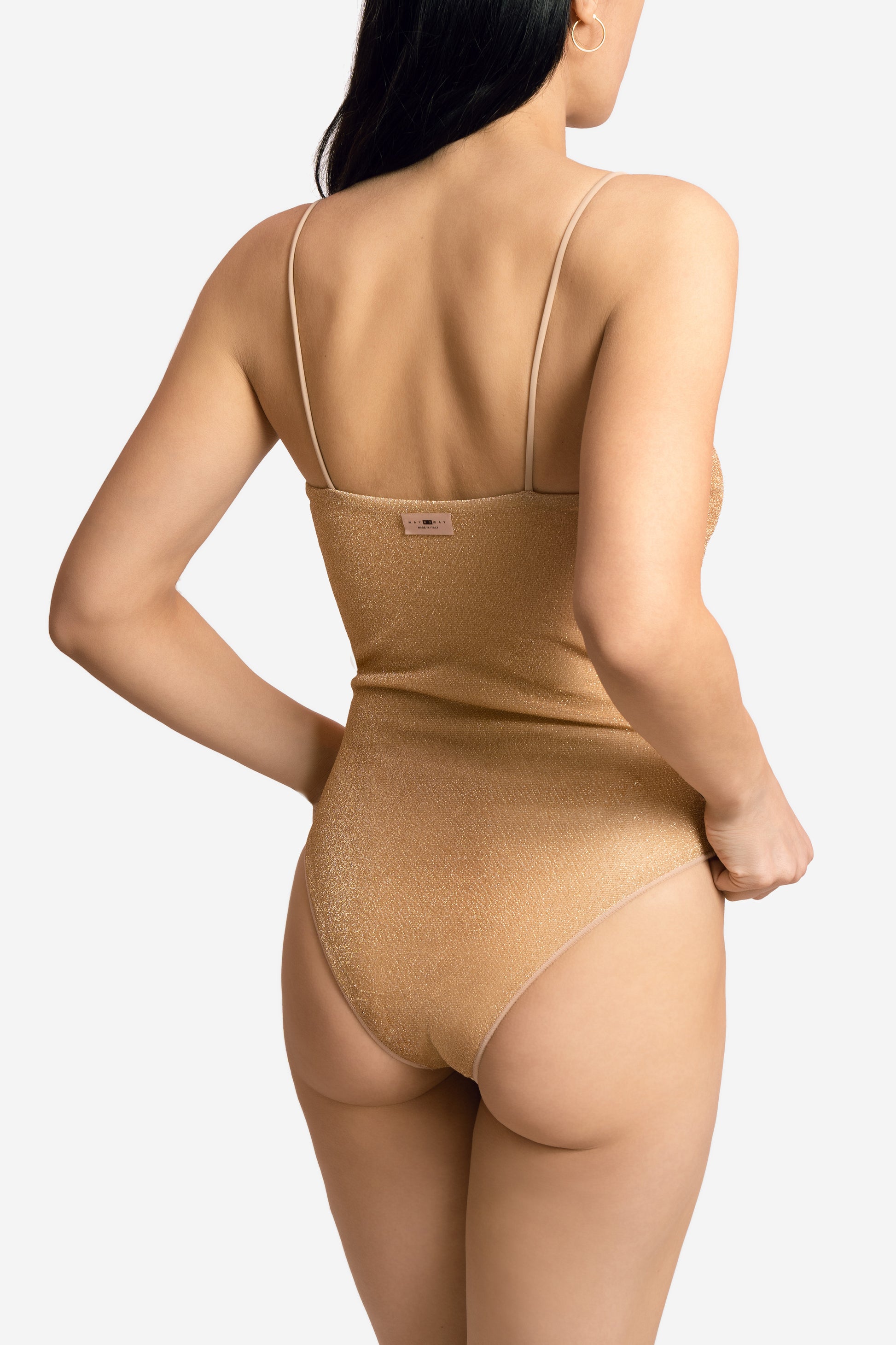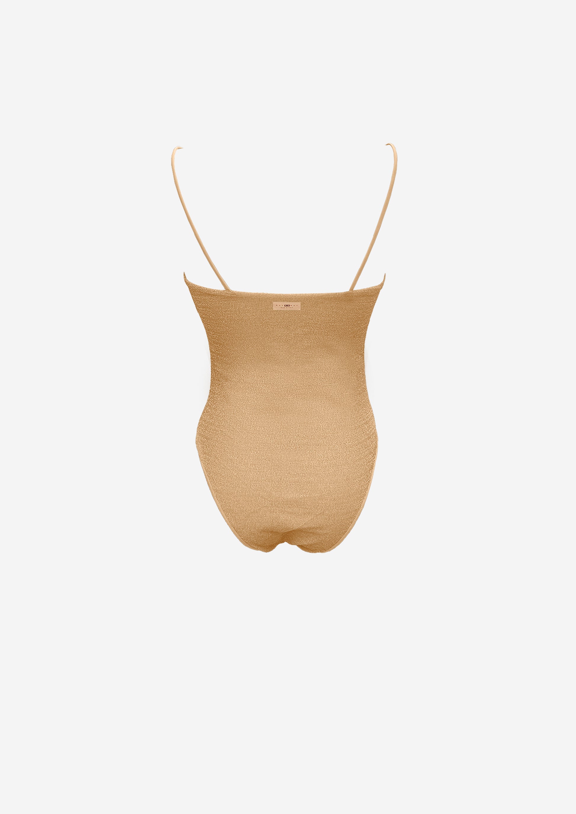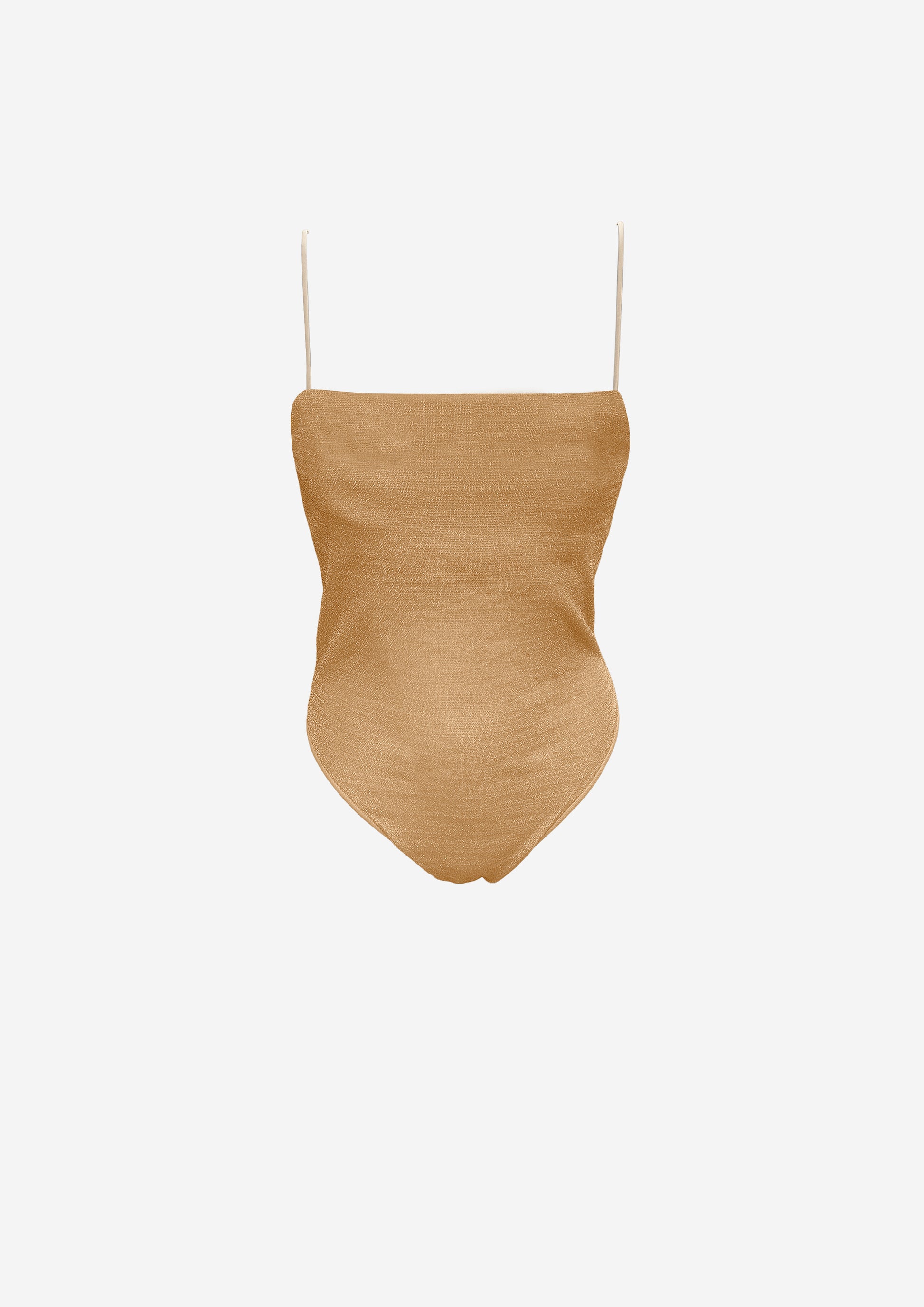 Lena, hergestellt in Italien, einteiliger Badeanzug aus goldenem Lurex.