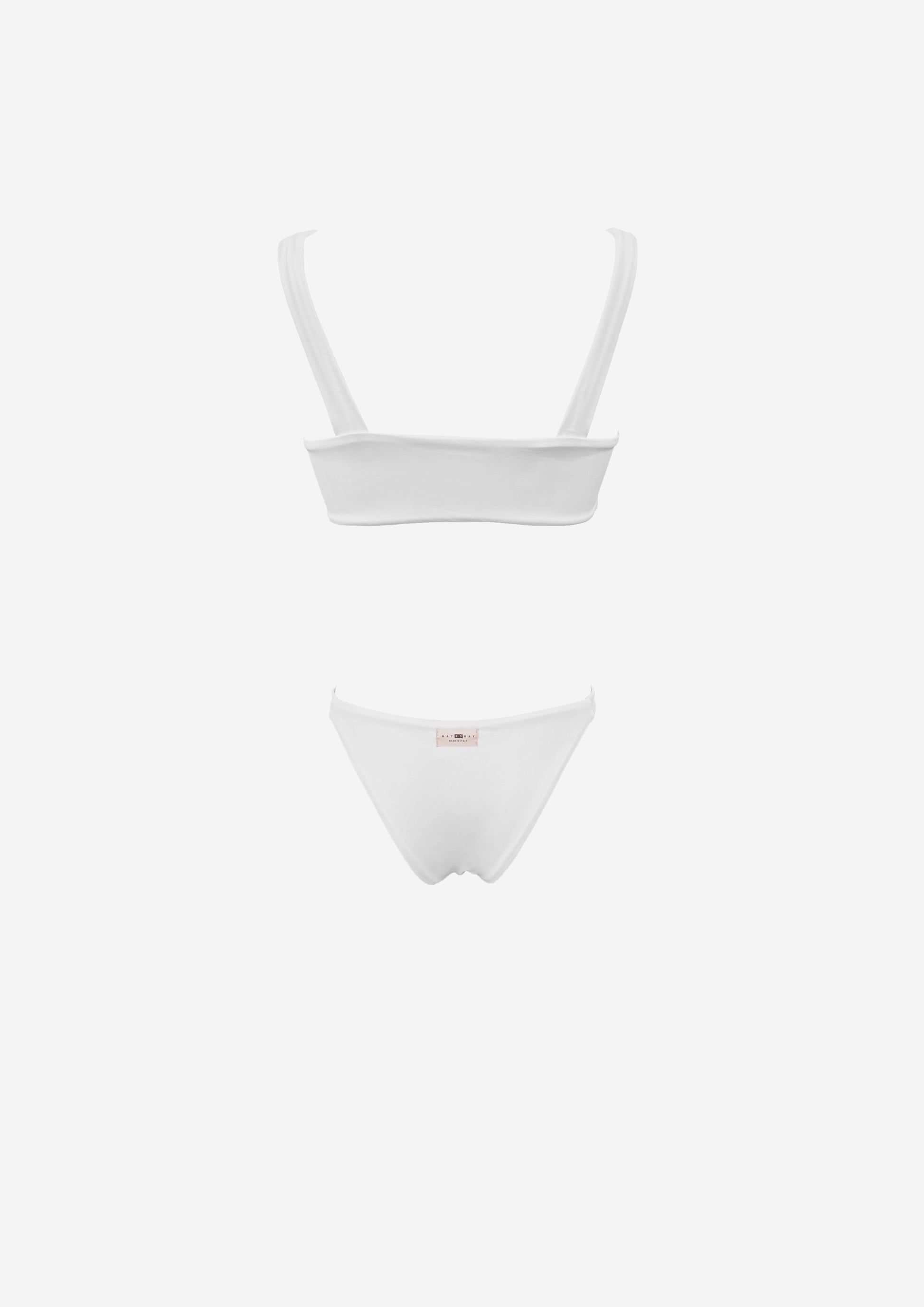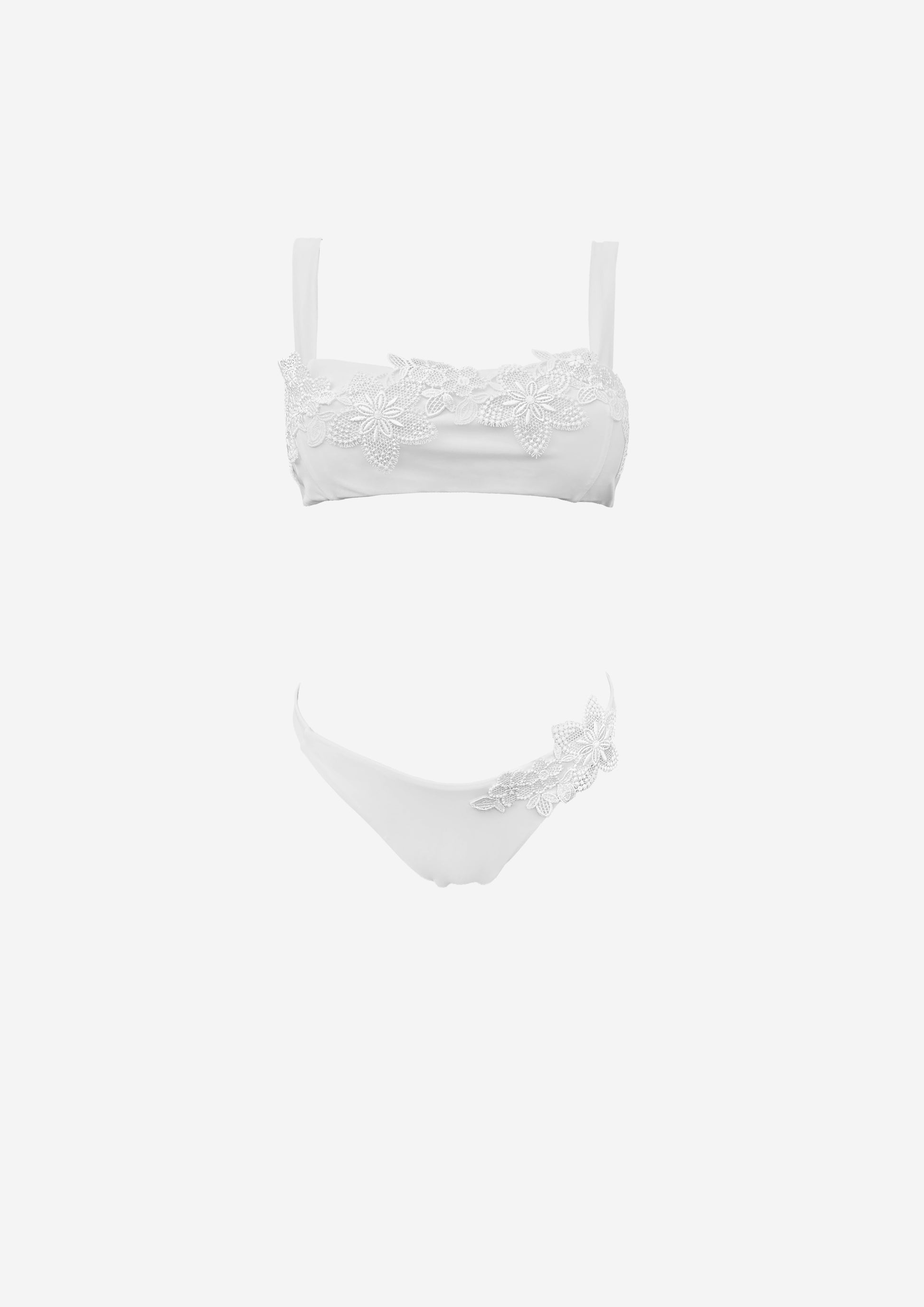 Selene, Made in Italy, bikini bianco con ricamo floreale in lurex abbinato.