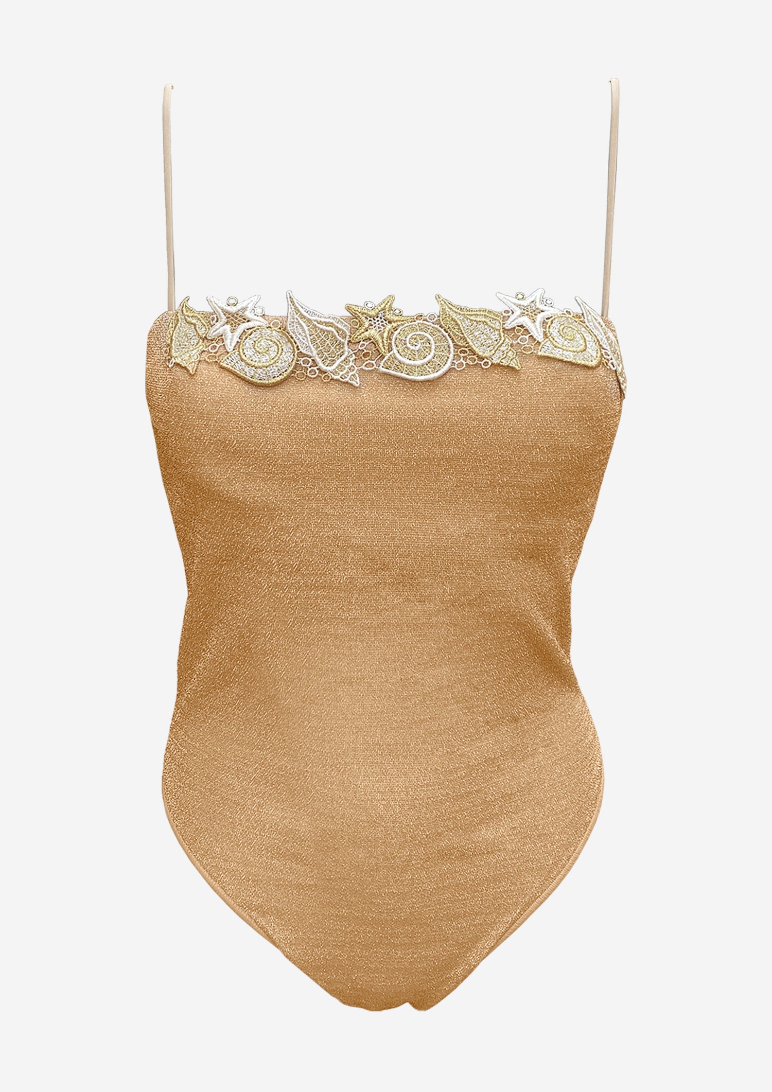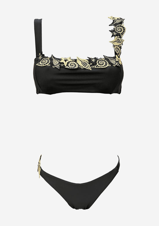 COMPRA ORASelene, Made in Italy, bikini nero con ricamo marino color nero/oro abbinato.